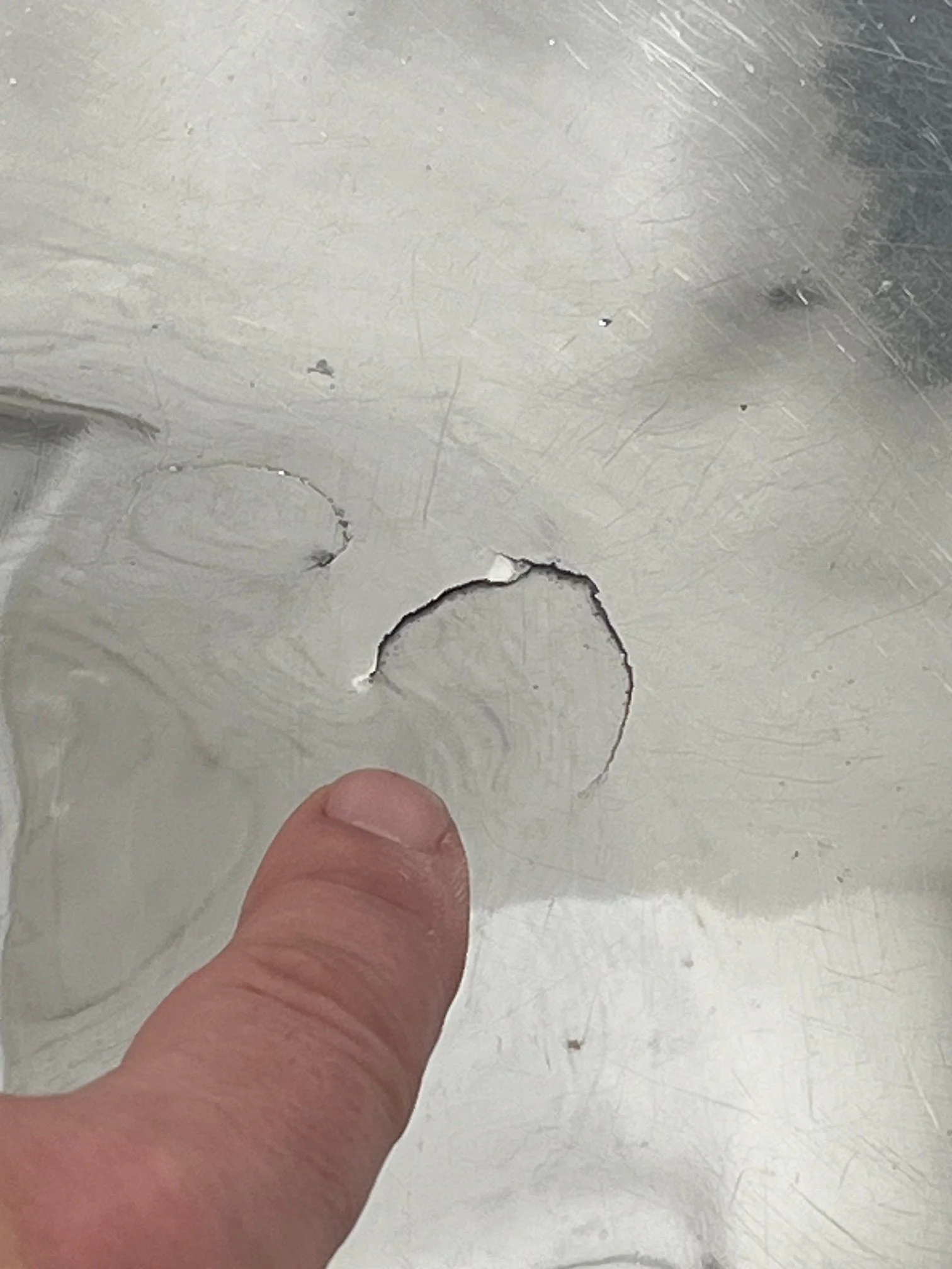 The seat has some scratches and a slight split to the surface where it connects to one of the base fittings - it is all very stable though. Some surface rust to the underside.